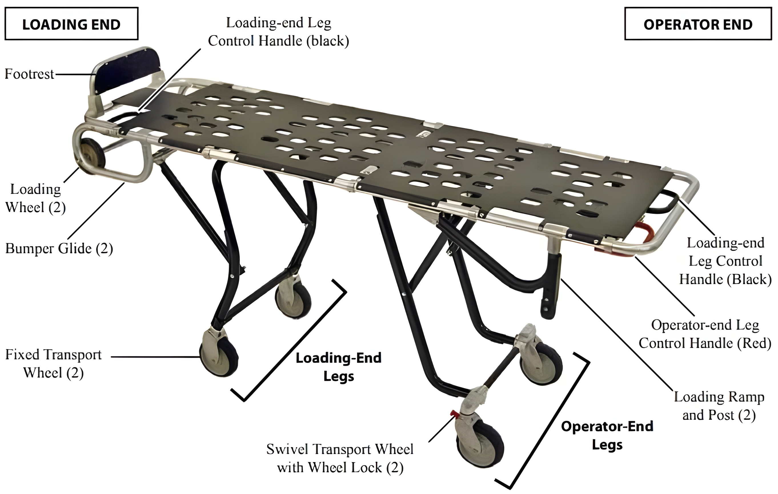 Det uafhængige bensystem og multi-niveau højdejustering giver operatørerne fuld kontrol fra første kontakt til transport og muliggør sikrere løft og sænkning med mindre manuel indsats. Dette giver mere effektiv håndtering og i mange tilfælde behov for færre personer. Betjening fra begge ender sikrer et effektivt workflow, mens integrerede hjullåse giver sikker positionering under lastning og aflæsning.